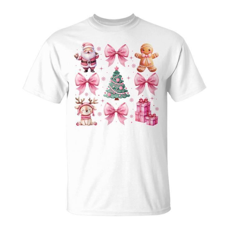 Pink Coquette Bow Santa Gingerbread Christmas Cute Girl Xmas T-Shirt